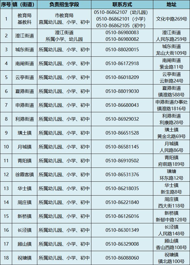 五、教育局基教科、镇(街道)教育科联系方式