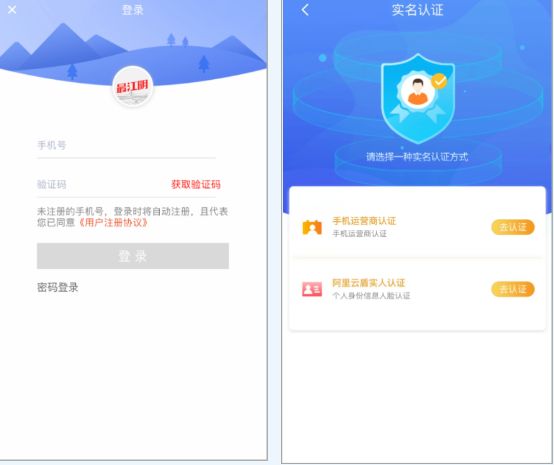 左图为最江阴登录页面,右图为最江阴实名认证页面