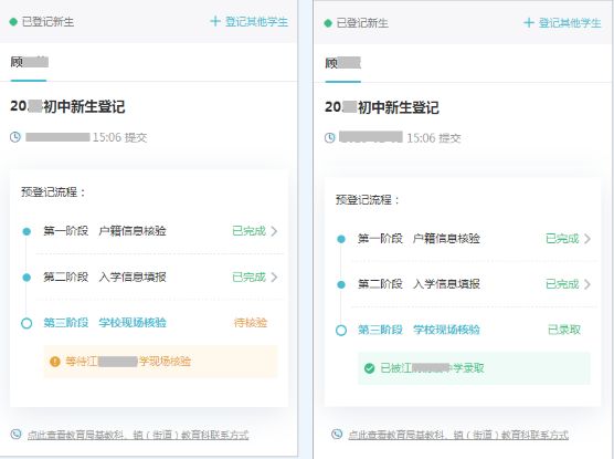 6月份,系统核验通过的学生收到学校的通知后前往学校现场核验,之后相关的录取信息会显示在进度查询的第三阶段。