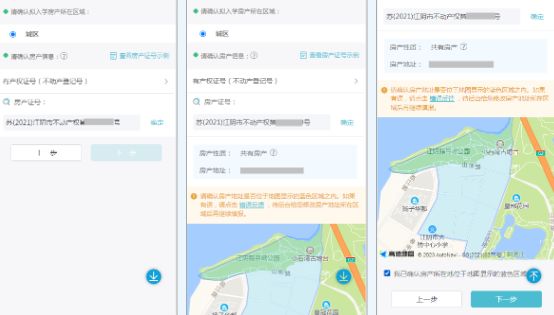 2. 选择拟入学区域及相关房产信息。