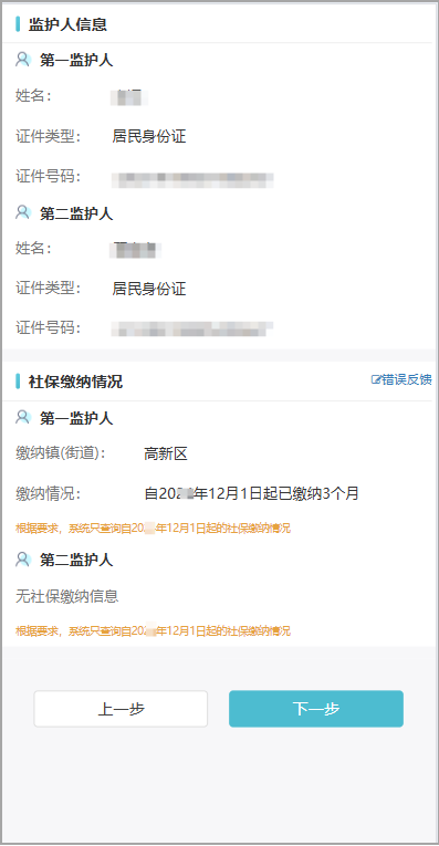 图为监护人社保缴纳情况确认页面