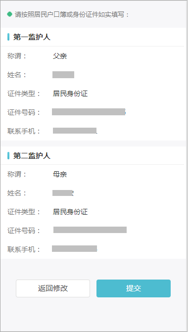 图为监护人信息确认页面