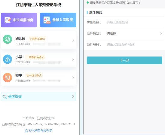 2025年江阴市新生入学预登记系统各学段开放时间