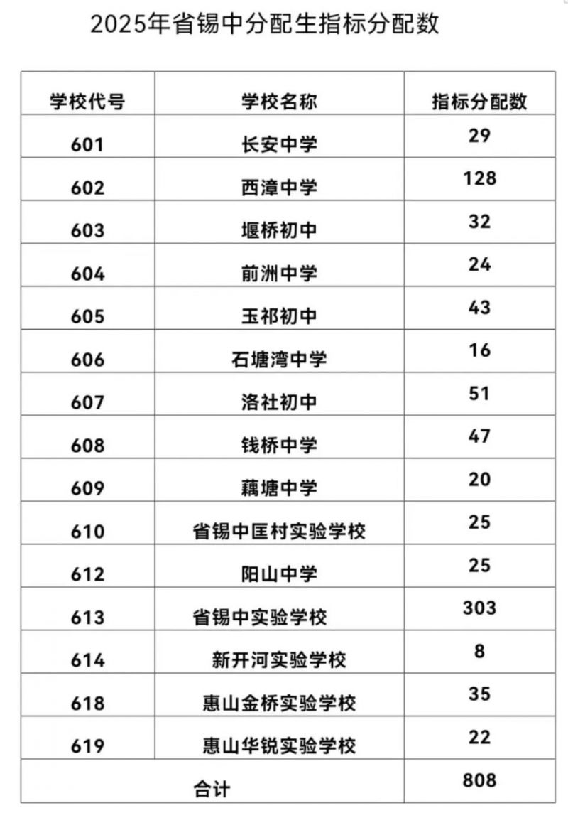2025年江苏省锡山高级中学分配生计划招生808人,具体分配情况公布如下: