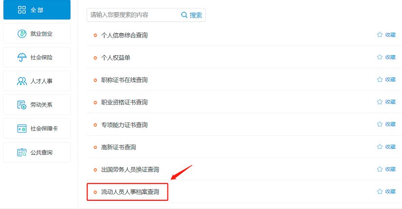 2、选择“流动人员人事档案查询”,点击进入