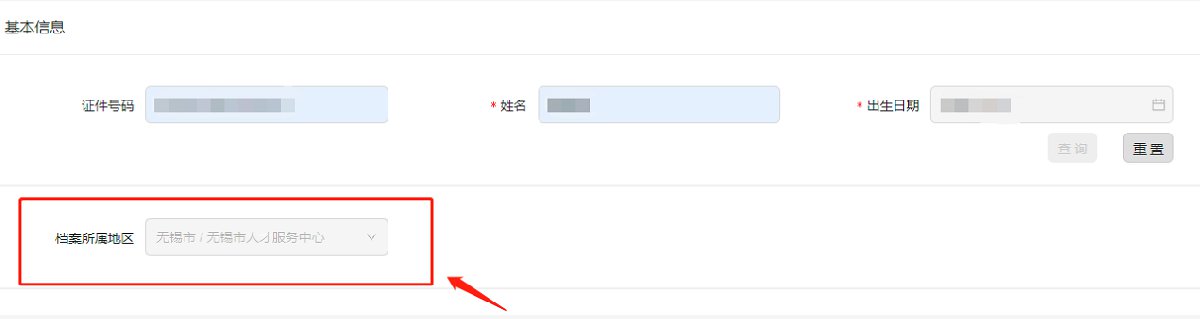 填写“证件号码”、”姓名”、”出生日期”,并点击查询,即显示档案所属地区