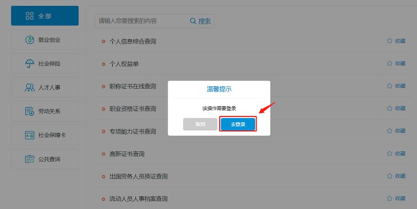 3、进入“流动人员人事档案查询”,选择“去登录”,点击个人登录项(选择自己需要的登录方式)并登录进入
